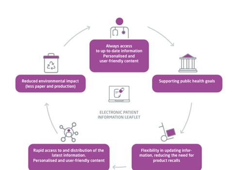 The introduction of an electronic version of the PIL offers several distinct advantages compared to the traditional paper-based PIL, benefitting both patient care and regulatory processes. An electronic PIL provides patients and healthcare professionals (HCPs) with immediate access to the latest product information, made available by marketing authorisation holders (MAHs) and the regulatory authorities responsible for the relevant jurisdiction. The electronic format allows both patients and HCPs to access information tailored to their needs (for example, in their language of choice and with the ability to electronically search for topics of interest), which enables stakeholders to make more informed decisions (Figure 1).